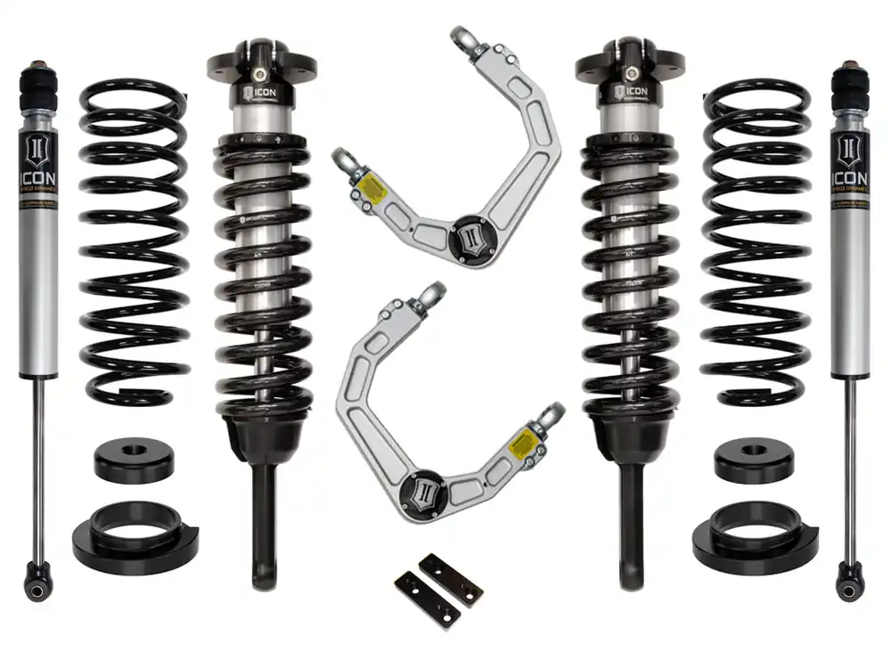 This system features upper control arms with ICON’s patented Delta Joint. The Delta Joint is a heavy-duty high angle ball joint that combines the durability of a ball joint with the performance characteristics of a traditional uniball. While the industry standard uniball does a great job of allowing the control arms of a vehicle to articulate with little bind, they do have an inherent weakness that leaves more to be desired when used in a daily driven application – exposure to the elements. The Delta Joint features a zinc plated housing providing the first layer of corrosion resistance, while a tough grease seal keeps potentially harmful elements out of the inner workings of the joint. Metal on metal construction and a greaseable design increase the longevity of the Delta Joint while at the same time allowing for noise-free operation. What makes the Delta Joint unique is that it brings the best of both worlds to ICON upper control arms with features that make it more robust than a uniball, and at the same time capable of greater angularity than a typical ball joint.
