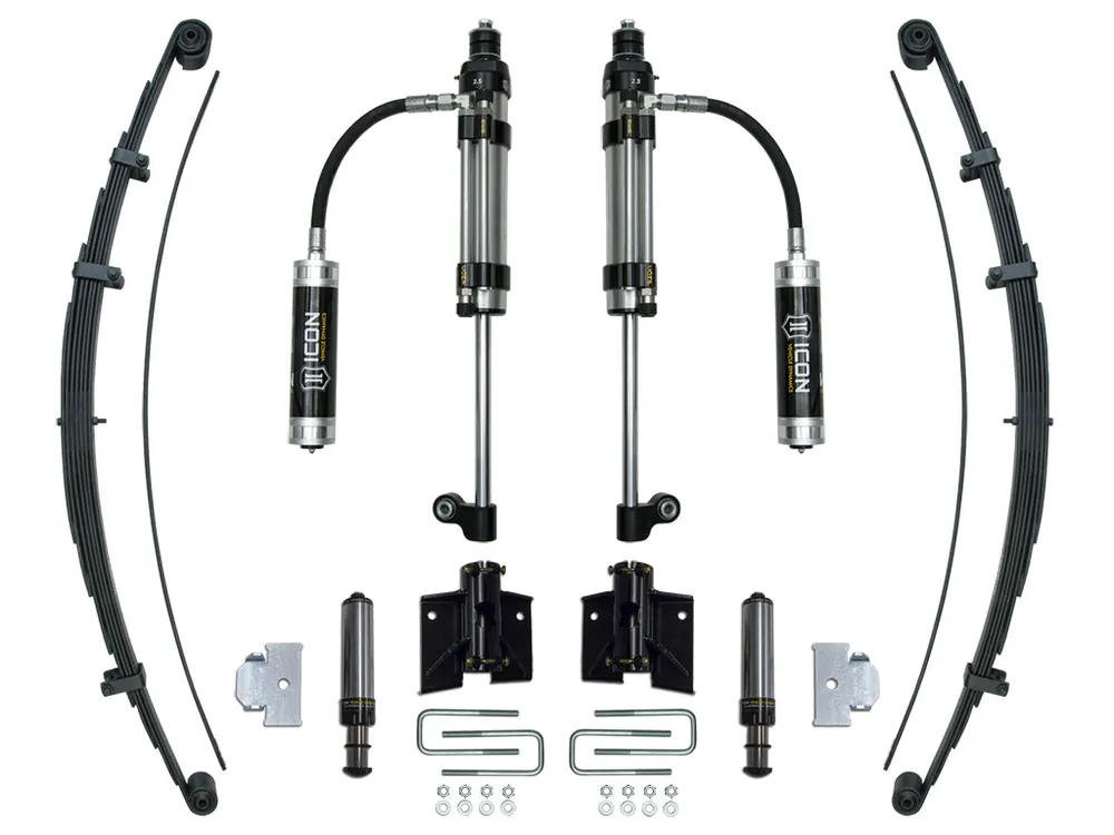 Through thousands of miles of accelerated testing in our R&D program, ICON has spent over a year identifying limiting factors in OE components and seeking to further extrapolate performance out of this vehicle. In a push to provide unparalleled performance for everything from high-speed desert running to off the grid expedition, the RXT Rear Suspension System was born. The RXT Rear Suspension System includes three all-new 2.5 Aluminum Series rear shock options and a multi-rate leaf spring that work in conjunction with the ICON rear bump stop kit. Installation of this system replaces the aforementioned “limiting factors” and completely redefines the potential of the 2005-2023 Toyota Tacoma with a 20% increase in wheel travel and the ability to adjust the leaf spring rate to compensate for varying vehicle setups.