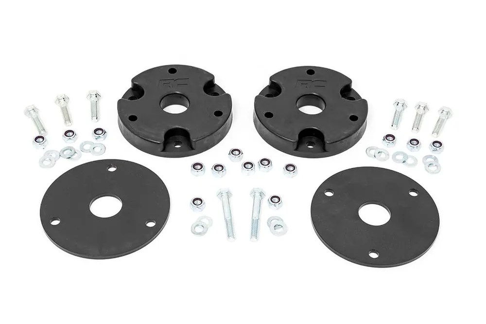 Increased ground clearance Levels the front with the rear of the vehicle Promotes better CV angles for off-road driving Maintains factory ride quality Includes bolt retention plates for easier installation