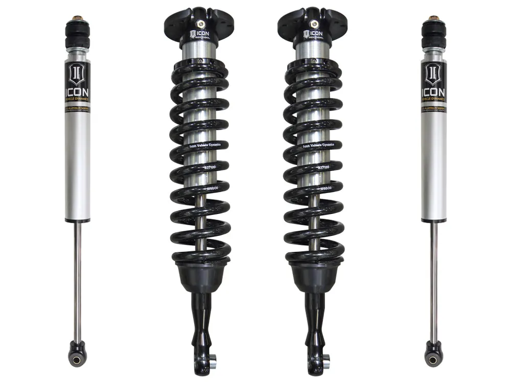 ICON Vehicle Dynamics Toyota Tundra Stage 1 suspension systems are designed with maximum performance and the serious driver in mind. ICON engineers’ primary focus is to increase wheel travel and damping ability, which translates into outstanding vehicle control and ride quality both on and off-road. The Stage 1 system includes vehicle-specific tuned 2.5” coilover shocks featuring an internal reservoir for exceptional cooling properties. These coilovers are also height adjustable from 1-3” allowing the use of larger, more aggressive wheel and tire combinations. ICON 2.0 VS Aluminum Series rear shocks utilize a vehicle-specific valving that balances the performance of the truck from front to rear. The ICON Vehicle Dynamics 2007-2021 Toyota Tundra Stage 1 suspension system is an excellent choice for those drivers looking to enhance the capabilities of their pickup on the road as well as in the dirt.