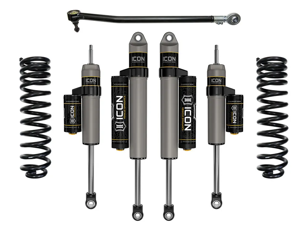 This ICON Vehicle Dynamics 2.5” suspension system is a great way to level your 4WD 2023 Ford F-250/F-350 Super Duty while drastically improving ride quality and performance. The Stage 3 system is perfect for on-road and off-road use including towing, job site duty and spirited off-road adventure. ICON’s Stage 3 System is comprised of dual rate coil springs optimized for trucks equipped with diesel engines, alignment cams, ICON 2.5 Aluminum Series front and rear piggyback reservoir shocks, and an adjustable track bar designed specifically for the 2017-2024 Super Duty. With the endless hours ICON has spent testing and tuning our suspension components and shocks as a complete package, you can be rest assured you have the best suspension solution on the market.