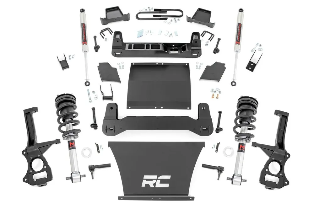 Explore New Heights: Transform your truck with Rough CountryΓÇÖs 4-inch Suspension Lift, perfectly designed to enhance the bold, aggressive styling of GMΓÇÖs all-new fourth-generation Sierra 1500 AT4 and Silverado 1500 Trailboss. These models, already equipped with GMΓÇÖs factory two-inch kit, are taken to the next level with Rough CountryΓÇÖs lift kitΓÇögiving your vehicle a commanding presence on and off the road. Whether you’re tackling tough trails or cruising through city streets, the Rough Country 4-inch Lift ensures improved performance and head-turning appeal.Innovative Design and Construction: When changing a vehicle’s suspension, the key to preserving ride quality is keeping the geometry of all suspension components as close to their factory angles as possible. This suspension kit combines the use of durable steel knuckles, differential brackets, and drop cross members to reduce cv angles and simulate factory angles all while achieving new heights. Featuring a set of upper strut spacers that offer uncompromised strength and rigidity, gaining lift height is no issue. Completing the rear of this suspension kit is a set of rear blocks, shocks, and u-bolts that allow you to retain factory-like geometry. This combined setup provides enough clearance to run 35″ tires without additional modifications. We didn’t want to limit you to one standard kit. Rough Country’s 4-inch kit is configurable with all the shock options that we offer. This allows you to choose which shock series you want! Ranging from our nitrogen-charged N3 shocks to our Vertex reservoir shocks the power to choose is in your hands.Installation: With minor cutting and a strut compressor required to install, an estimated timeframe of 8-10 hours is recommended to complete this full installation. This full kit can be installed at home and can be completed efficiently and quickly!Limited Lifetime Replacement Warranty: Rough Country’s 4″ Suspension Lift Kit is backed with a limited lifetime replacement warranty towards manufacturer defects. As such, the product is protected from structural and workmanship damage after the date of purchase. With our industry-leading warranty give yourself peace of mind when using Rough Country’s Suspension products!