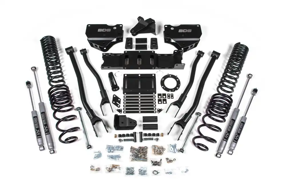 Built to outperform, BDS Suspension engineered a 4-inch lift kit with 4-Link conversion for your 2019-2025 RAM 2500 gas powered truck that will surely impress. Designed to improve stance, performance, and capability, this kit includes everything necessary to set your truck up right with clearance for up to 35″ tires.