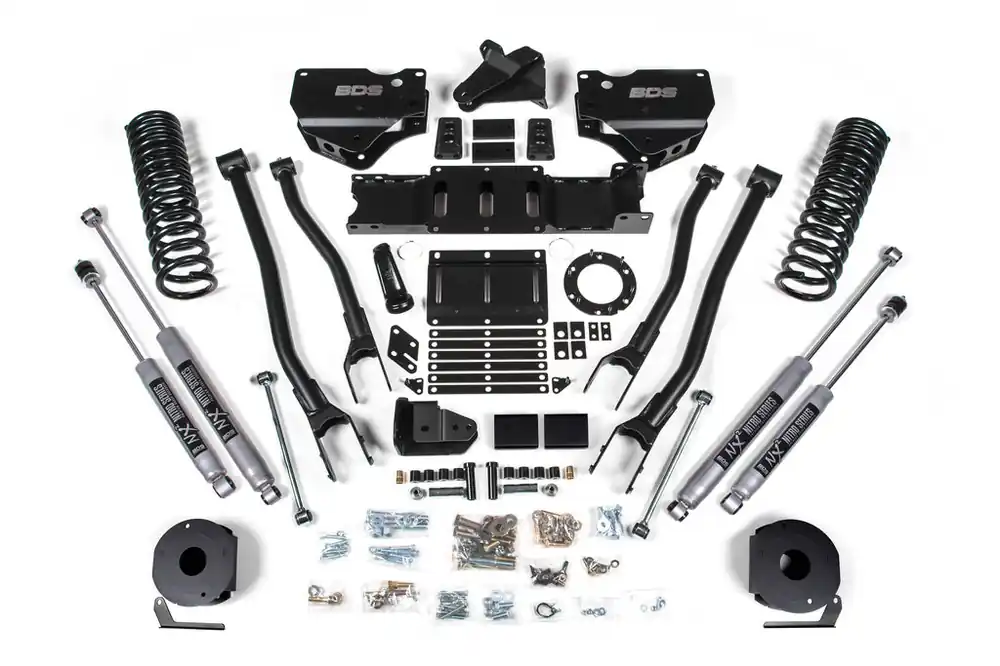 Built to outperform, BDS Suspension engineered a 4-inch lift kit with 4-Link conversion for your 2019-2024 RAM 2500 diesel powered truck that will surely impress. Designed to improve stance, performance, and capability, this kit includes everything necessary to set your truck up right with clearance for up to 35″ tires.