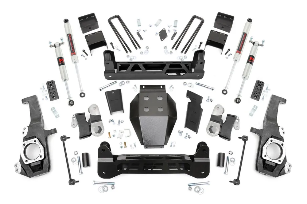 Transform Your HD With Confidence: Upgrade your fourth or fifth-generation Chevy/GMC 2500HD/3500HD with Rough Country’s 5-Inch Non-Torsion Drop Suspension Lift Kit. This high-clearance system adds serious attitude and off-road capability to your truck, delivering the height you need to run 35-inch tires, all while maintaining a clean, integrated factory look underneath thanks to its non-torsion drop design.Engineered for a Sleek, Factory-Fit Appearance: Unlike traditional kits that leave torsion bars hanging low and exposed, Rough Country’s innovative non-torsion drop design keeps everything tucked up and streamlined. You’ll enjoy unmatched ground clearance and a sharp, OEM-style appearance that complements the aggressive stance of your HD truck.Built for Strength and Precision: The kit includes rugged, laser-cut front and rear crossmembers crafted from durable steel for a precise, bolt-on fit. The signature “RC” logo adds a bold touch up front, while the heavy-duty differential skid plate offers extra protection during off-road adventures. Lifted knuckles, rear anti-wrap blocks, and a range of premium shock options, like Rough Country’s nitrogen-charged N3s or the high-performance Vertex reservoir, ensure you get the ride feel and handling you demand.Ride Quality You Can Rely On: This lift system retains factory ride comfort and control, keeps axle geometry true to spec, and preserves OEM track width. No drivetrain modifications or differential drilling required, just a clean install and predictable performance, mile after mile.Backed by Rough Country’s Limited Lifetime Replacement Guarantee: Drive with peace of mind knowing your lift kit is covered for the long haul.