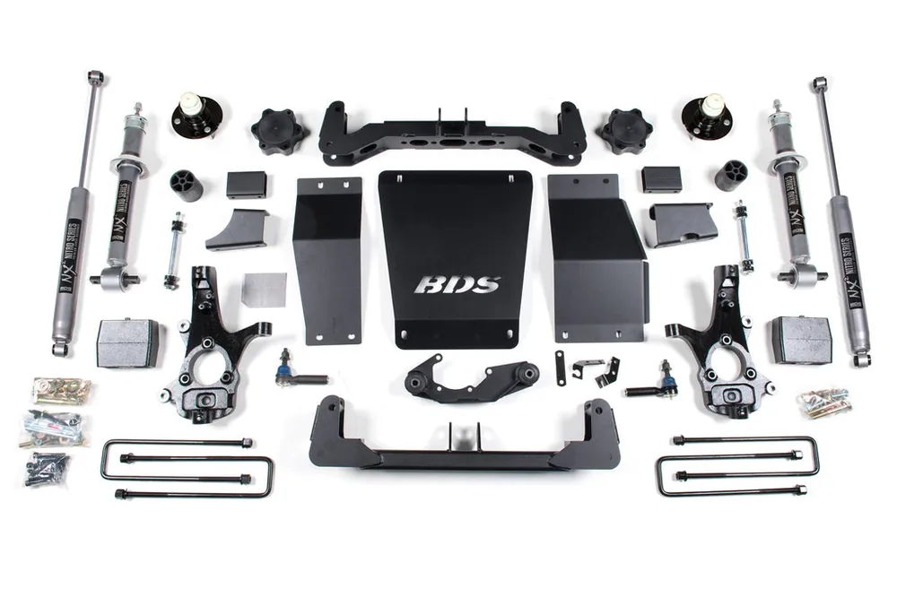 The BDS 6-inch lift kit is an amazing upgrade for your 2014-2018 Chevy Silverado and GMC Sierra 1500 that will leave others in envy. Designed to improve stance, performance, and capability, this kit includes everything necessary to set your truck up right with clearance for up to 35″ tires
