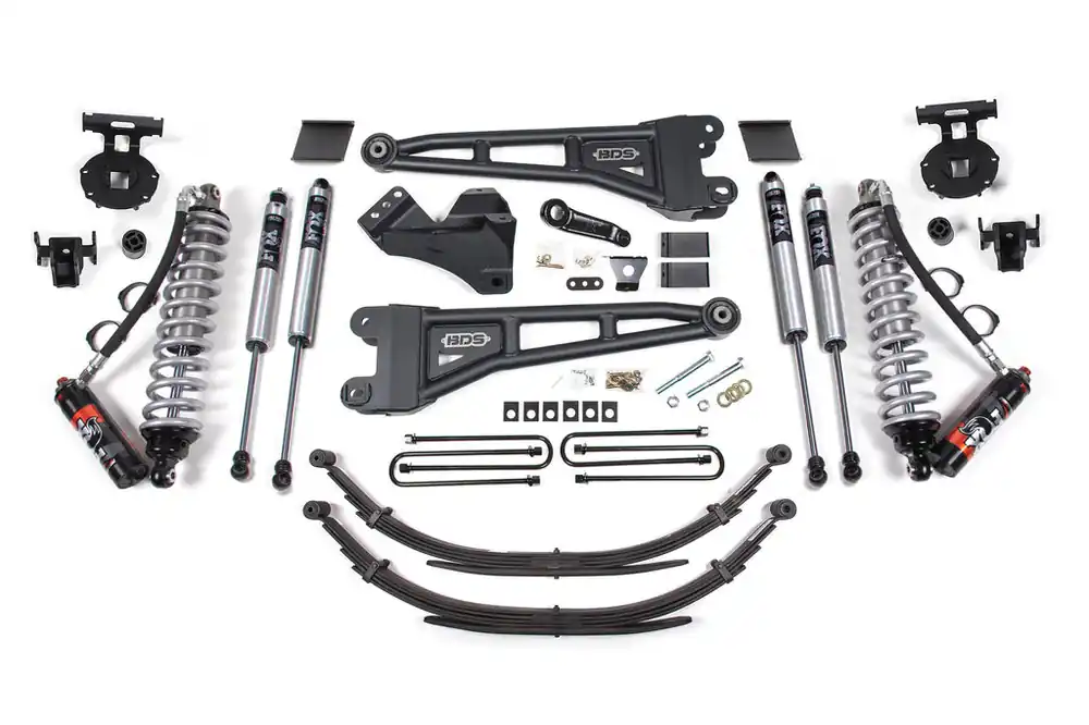 Built to outperform, upgrade your 2011-2016 Ford Super Duty F250 and F350 diesel truck to the next level with this 6-inch radius arm lift kit with FOX Performance Elite coil-over conversion from BDS. Designed to improve stance, performance, and capability, this kit includes everything necessary to set your truck up right with clearance for up to 37″ tires.