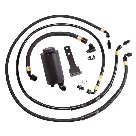 Our over-engineered Triple-Baffled Power Steering Reservoir (aeration and spillover proof) is at the core of this kit. Chase Bays only uses the highest quality components available. Our reservoir is constructed of 6061 aluminum and is anodized black with a laser etched cap. The reservoir itself uses our own bracket design to bolt in just like the factory Subaru.