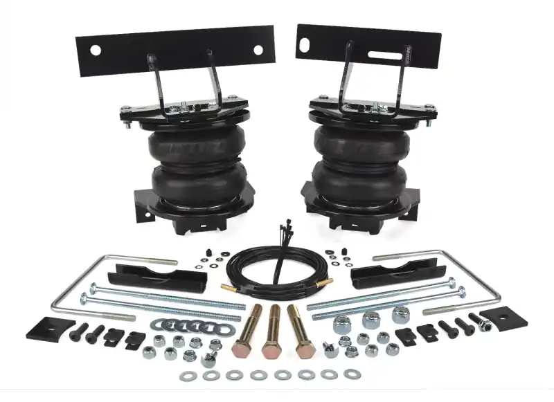 The LoadLifter 7500 XL Ultimate offers support for the heaviest tows with an internal jounce bumper, absorbing shock for the smoothest ride. Air Lift’s fully adjustable, industry-leading air springs are the perfect upgrade for your vehicle, eliminating any issues you might face when towing and hauling. With Air Lift’s LoadLifter 7500 XL Ultimate and the added stability that air springs provide, you can haul safely, knowing that you have optimal braking and steering control. The kit offers up to 7,500 lbs. load-leveling capacity while eliminating squat, trailer sway, body roll and bottoming out for select Ford F-350, dual rear wheel and four-wheel drive. The LoadLifter 7500 XL Ultimate kit is set apart by a pair of massive 7-inch, double-convoluted bellows air springs. The larger air springs allow for better leveling abilities at lower air pressures than similar systems, keeping your cargo safe and secure while ensuring a more comfortable ride.The closed-cell urethane foam jounce bumper inside the air spring provides a cushion of air that absorbs shock, eliminates harsh jarring on rough roads, and protects vehicles carrying heavy loads. An Air Lift exclusive, the kit features upper and lower roll plates for added protection. All end caps are made with an ultra-high-strength nylon composite formula, strong as steel but much lighter and corrosion-proof. The air springs are built like tires, reinforced with 2-ply fabric for maximum strength. With the added stability that air springs provide, you can haul safely, knowing that you have optimal braking and steering control. The LoadLifter 7500 XL Ultimate has up to 20% more air spring volume when compared to Air Lift’s LoadLifter 5000 series. The LoadLifter 7500 XL Ultimate’s air springs are maintenance-free, can run safely on zero air pressure, and are fully adjustable from 5-100 PSI for precise control. Do not exceed the vehicle’s gross vehicle weight rating (GVWR).