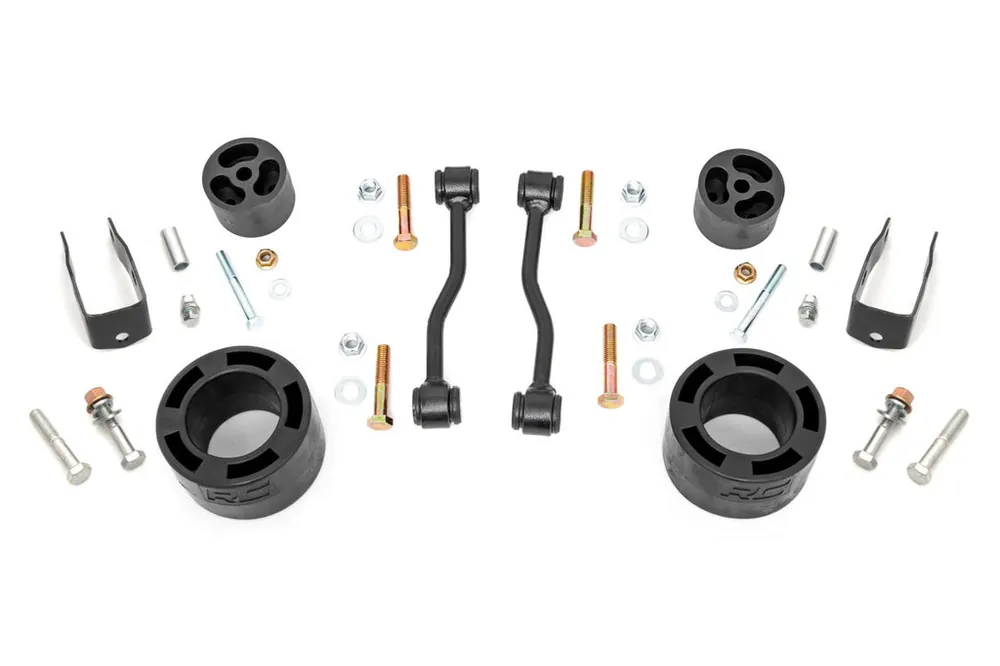 Take your Jeep Gladiator JT to the next level with Rough Country’s 2.5-inch Suspension Lift Kit! Designed specifically for the Gladiator, this kit delivers the perfect blend of style, performance, and functionality while giving you the clearance to easily run 35-inch tires. Whether it’s the daily drive or the toughest trails, this lift kit is built to perform.Level Up Your Ride: Eliminate that factory nose-dive and give your Gladiator a bold, leveled stance. This lift kit raises the front to match the rear, delivering a rugged look and a confident presence on or off the trail.Conquer Tough Terrain: Gain the extra ground clearance you need to tackle rocks, ruts, and steep inclines with confidence. The 2.5-inch lift improves approach, breakover, and departure angles, ensuring your Jeep is ready for any adventure.Performance-Driven Design: This kit doesn’t just add height, it enhances your Jeep’s capability. With durable front and rear coil spacers, shock extensions, sway bar links, and bump stops, you’ll retain your factory coils and shocks for the comfortable ride Jeep intended while enjoying added performance where it matters most.Ready for Bigger Tires: Make room for aggressive upgrades. This kit clears up to 35-inch tires, giving your Gladiator a tougher stance and improved off-road traction without compromising ride quality.Hassle-Free Installation: Designed for a straightforward bolt-on process, this lift kit requires no cutting or drilling. Spend less time in the garage and more time behind the wheel exploring the trails.Custom Shock Options: Fine-tune your ride with a range of premium shock upgrades. Choose from N3 nitrogen-charged shocks, V2, or the performance M1 shocks for a suspension setup tailored to your driving style.