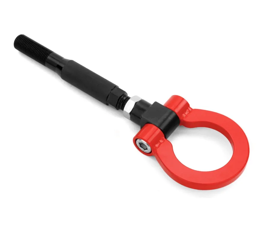 Crafted from super durable metal, the tow hook features a black powder-coated shaft and a vibrant red powder-coated hook, delivering a race-inspired look that stands out. Installation is straightforward with the included allen key, fitting perfectly into the factory tow hook provision on the front bumper for a secure, OEM-style fit without any modifications.