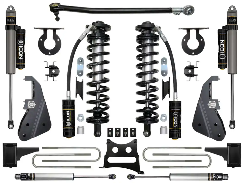 Designed to provide a height-adjustable option to the extremely popular ICON Vehicle Dynamics 4.5” Ford Super Duty Suspension Systems, these coilover conversions provide excellent on-road ride quality and off-road performance while at the same time allowing for end-user ride height adjustability.