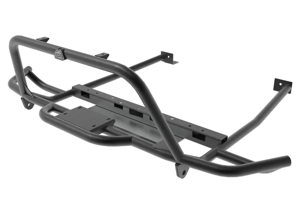 Crafted from heavy-gauge tubular steel, 1-1/2 inch diameter x 1/8 inch wall, this robust bumper is built to withstand the toughest challenges on and off the road. Equipped with a winch mount, the bumper accommodates up to a 5500 LB winch, empowering you to tackle tough terrains with confidence. (winch not included)