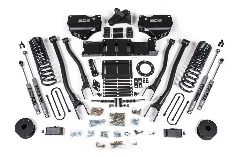 Raise your RAM 3500 with factory rear air bags truck to next heights with this 6-inch radius arm lift kit from BDS Suspension. Designed to improve stance, performance, and capability, this kit includes everything necessary to set your truck up right with clearance for up to 37″ tires.