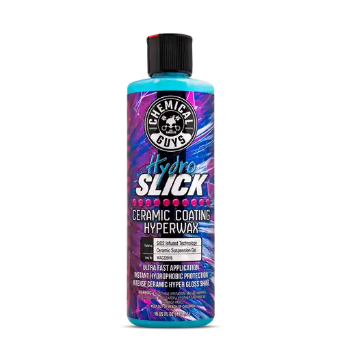 HydroSlick is a true ceramic coating formulated to deliver a crystal-like superior shine and incredible reflective finish, while still offering the similarity and customer familiarity of a wax! By filling in microscopic surface imperfections, HydroSlick creates a super smooth surface that reflects light back at you with unparalleled shine like only a true ceramic can. It’s so easy, you can apply as often as you want! Use HydroSlick alone as a standalone ceramic coating on untreated paint for year-round durable protection, or add it to HydroCharge or your favorite Chemical Guys ceramic coating to make the shine pop even more!