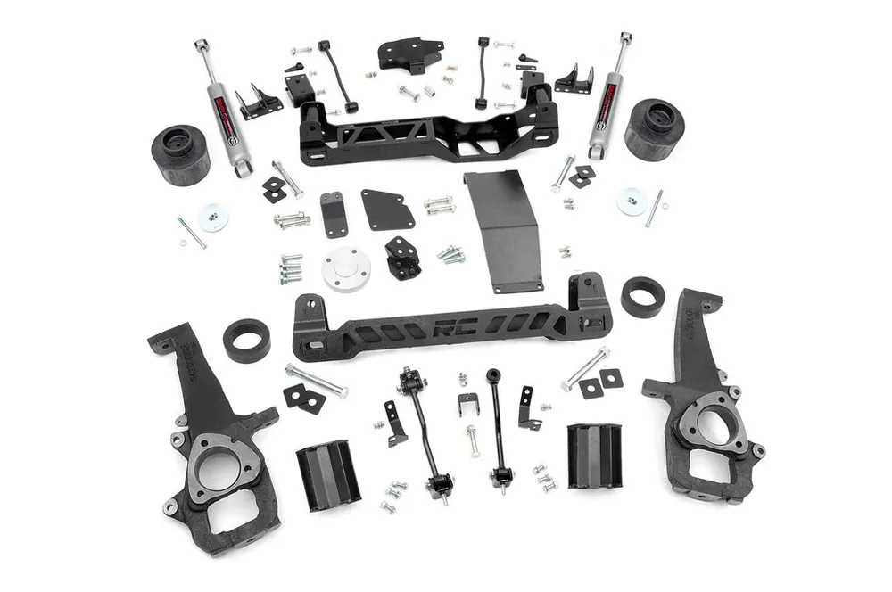 Utilizing heavy-duty, laser cut, steel equipment engineered by Rough Country, these 6-inch Suspension Lifts are complete kits that include everything needed for outstanding off-road performance. High-clearance front and rear cross-members provide enough room for off-road climbs and runs.