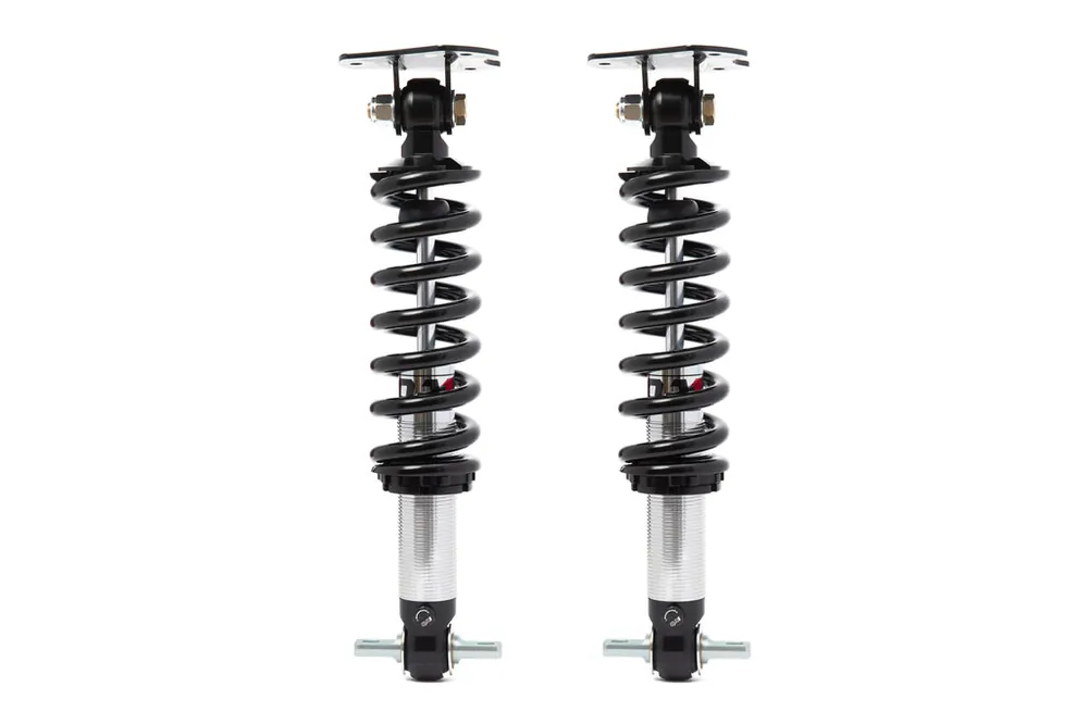 Product Overview The QA1 lowering kit is an all-in-one solution for anyone looking to upgrade the suspension of their 07-18 Silverado 1500 / Sierra 1500’s. This kit includes both QA1’s front Pro Coil Coil-Overs and Rear Drop Kit, which provide maximum adjustability to achieve the perfect lowered stance, while providing significant improvements to ride quality and performance. Ride Height AdjustabilityQA1 lowering kits offer easy and precise adjustments for your truck’s stance. Fully threaded front coil-over shock bodies provide adjustment without the use of clumsy shims or spacers, while our rear drop kits offer 1″ of adjustment to dial in the final rake of the truck. Front coil-overs provide a drop range of 3″-5″ using drop spindles or 1″-3″ with stock spindles. Lower the rear with a drop range of 2-3″. Heavy Duty Shock Design QA1 Engineers have tackled the challenge of supporting the weight and payload capacity of modern trucks by designing the heavy-duty version of our Pro Coil system, which features an upgraded shock with polyurethane bushings and a 1″ chromoly T-bar. The system’s new bushing design was specifically chosen to withstand the daily use of trucks, rather than using spherical bearings. Single-Adjustable ShocksQA1 Proma Star single adjustable shocks deliver exceptional ride quality and performance to your Silverado. With the simple turn of a dial, you can effortlessly switch between a comfortable cruise and a more aggressive feel.Rear Shackles and Hanger KitsQA1’s Rear Shackle and Hanger Kits are the ultimate solution for lowering the rear of your truck without compromising ride quality. Made from heavy-gauge steel with a powder-coated finish and top-notch hardware, our kits guarantee long-lasting performance in any driving conditions.Easy, Bolt-In InstallationOur commitment to thoughtful product design is evident in every fully bolt-in kit we produce, which guarantees a hassle-free installation process.