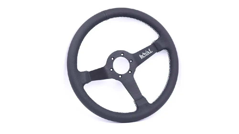 Home / Accessories / Crafted Grip Royal Brute 350mm Deep Dish Steering Wheel w/ Black Leather Grip, and White Stitching