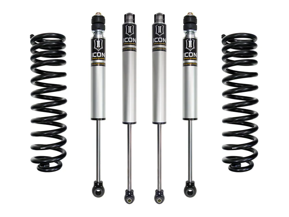 This ICON Vehicle Dynamics 2.5” suspension system is a great way to level your 4WD 2023 Ford F-250/F-350 Super Duty while drastically improving ride quality and performance. This entry level system is perfect for on-road and towing use, as well as mild off-road use like job site duty and washboard gravel roads. ICON’s Stage 1 System is comprised of dual rate coil springs optimized for trucks equipped with gasoline engines, alignment cams, and ICON 2.0 Aluminum Series front and rear shocks. With the endless hours ICON has spent testing and tuning our suspension components and shocks as a complete package, you can rest assured you have the best suspension solution on the market.