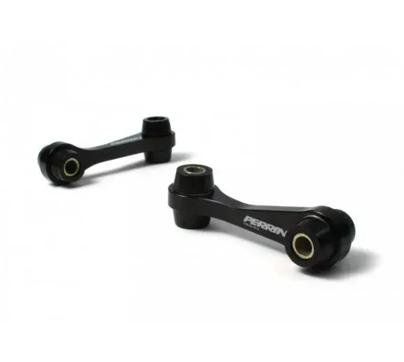 OEM steel endlinks are small, flimsy and can fail if a larger rear swaybar is installed. OEM endlinks are weak and will flex greatly after installing a stiffer aftermarket swaybar. This flexing makes your stiffer aftermarket swaybar feel less responsive. PERRIN polyurethane endlinks are made with stiff polyurethane bushings pressed into 6061T6 aluminum arms to provide a solid connection between your swaybar and chassis. This translates into a more predictable and better handling car.