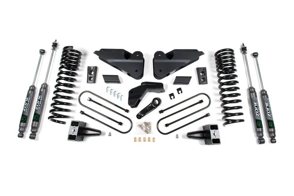Take your RAM 3500 to new heights with this 5.5″ lift kit from Zone Offroad. Kits include everything needed from full length coil springs and stout radius arm relocation brackets to steering correction and rear lift to level the stance. Get the look, performance, and capability your truck deserves with clearance for up to 37″ tires.