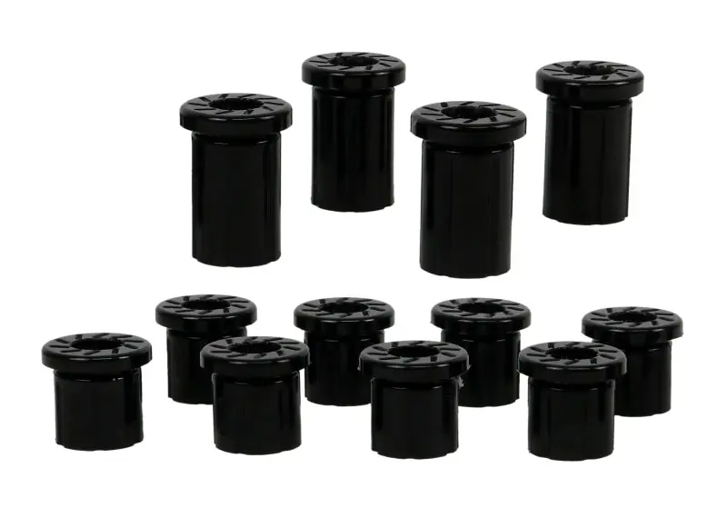 A critical service item for any leaf sprung vehicle. High kilometres and heavy load carrying causes excessive wear on rubber bushings. Whiteline’s signature black bushings are made tough and offer outstanding abrasion resistance, high load bearing capability (4WD’s, utes and towing), flexibility, increased tensile strength and chemical resistance to oil, grease, ozone and weathering.