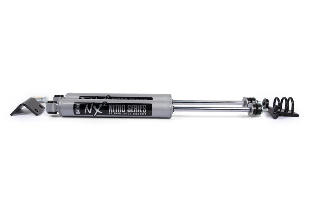 The BDS NX2 Stabilizer uses a pressurized nitrogen-charged twin-tube design with 10-stage velocity-sensitive valving for lightning-fast dampening adaptive to whatever terrain you traverse on- or off-road. The 2-inch bodied shocks use a large 1-3/8-inch fluon-banded piston, self-lubricating seals and a 14mm hardened chrome shaft to help resist rock chips and corrosion.