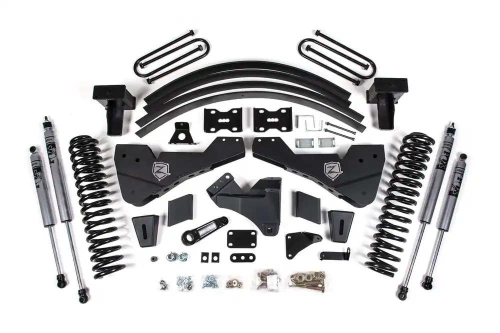 Take your Super Duty to new heights with this 8″ lift kit from Zone Offroad. Kits include everything needed from full length coil springs and stout radius arm relocation brackets to steering correction and rear block + add-a-leaf kit. Get the look, performance, and capability your truck deserves with clearance for 38″ tires.