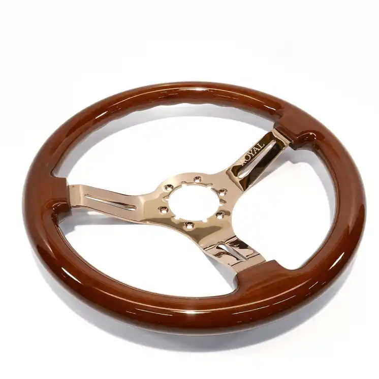 Crafted with a sturdy steel frame and finished in copper chrome, this 350mm diameter wheel offers a comfortable 50mm depth and a 100mm grip circumference for excellent control. The brown stained wood grip adds a nostalgic touch ideal for classic cars, hot rods, and JDM builds. It features a 6-bolt 70mm PCD pattern and weighs just 2lbs, ensuring easy installation and responsive handling. Hardware is included for a seamless fit, though the horn button is sold separately.