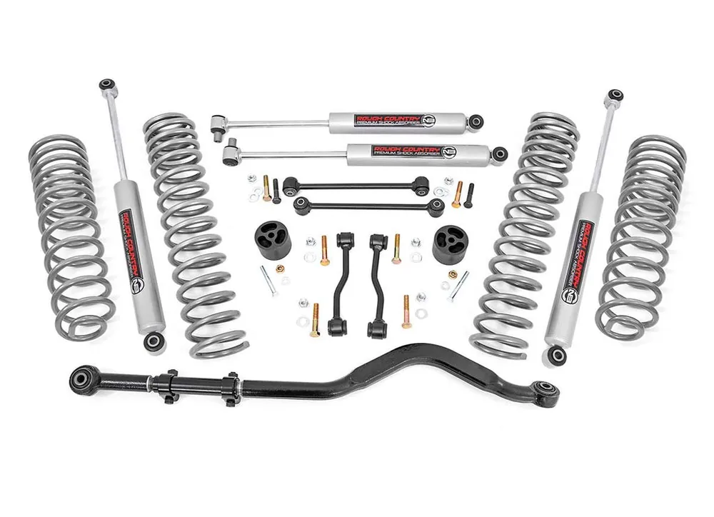 Transform Your Gladiator: Take your Jeep Gladiator JT to the next level with Rough Country’s 3.5-inch Suspension Lift Kit. Designed for both adventure seekers and daily drivers, this kit delivers legendary off-road performance while maintaining smooth, confident on-road handling.Conquer Any Terrain with Extra Clearance: Gain the ground clearance you need to tackle rocky trails, deep ruts, and uneven terrain with ease. With room to run up to 37-inch tires, your Gladiator will turn heads with a bold, aggressive stance that commands attention on and off the road.Perfectly Level Stance: Eliminate that factory nose-down look with a front-to-rear level lift. This balanced setup not only enhances your Gladiator’s appearance but also provides a more stable and predictable ride over any surface.Optimized Coil Spring Performance: Featuring OEM-tuned coil springs, this kit delivers exceptional ride comfort and precise handling. Dual-rate spring technology enhances load support and off-road stability, ensuring your Jeep performs flawlessly whether you’re cruising highways or crawling over rocks.Heavy-Duty Forged Track Bar: Keep your axles perfectly centered with our solid forged steel track bar and rear track bar bracket. Boasting a massive 1.25-inch outside diameter and durable OEM-style rubber bushings, it provides unmatched strength and long-lasting performance against the toughest terrain.Quick and Hassle-Free Installation: No need to spend a full weekend in the garage. This lift kit is designed for a straightforward, bolt-on installation, so you can get back to what really matters, hitting the trails.Custom Shock Options for Every Adventure: Tailor your ride to your driving style with multiple shock options, including nitrogen-charged N3, V2, M1 Monotube, or our premium M1R shocks. Whether you want maximum off-road control or all-around versatility, Rough Country lets you build your lift your way.With Rough Country’s 3.5-inch Suspension Lift Kit, you’re not just upgrading your Jeep, you’re unlocking its full off-road potential. Take command of the trail, enjoy a smoother ride, and give your Gladiator the presence it deserves.