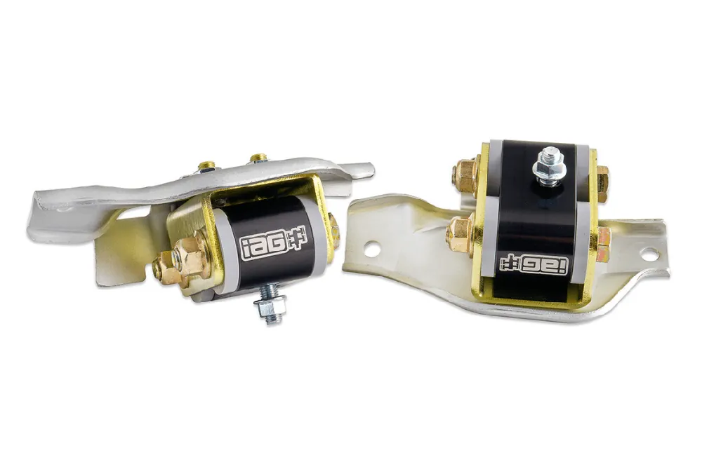 A standout feature of IAG’s Engine Mounts is their interchangeable design, letting you adjust the bushing stiffness as your performance needs evolve. While the included 55A durometer bushings will provide you with a comfortable ride, we also have stiffer options for high-performance applications. The next step up is our 75A Street Series Bushing Kit, Competition Series Red 90A Bushing Kit, and finally, our Solid Steel Race Bushings that significantly increase the stiffness over the stock and GROUP N mount (sold separately).