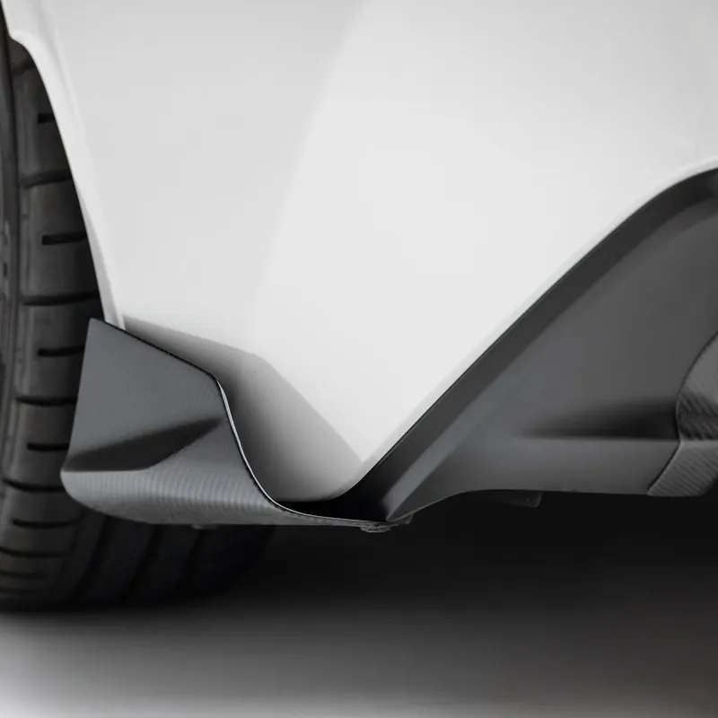 Constructed from durable carbon fiber materials, these spats are designed to withstand the demands of the road while offering a touch of sleek sophistication to your vehicle. Engineered specifically for your car, they ensure OEM fitment, seamlessly integrating with the body lines for a flawless look.