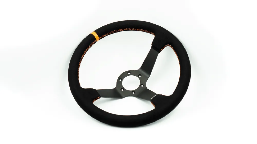 Grip Royal Club Solid 350mm Deep Dish Steering Wheel w/ Black Suede Grip, Orange Stitching, and Orange TDC Stripe Get Yours