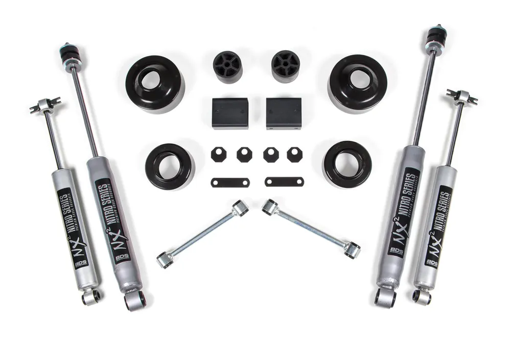 Boost the height of your 2007-2011 Jeep Wrangler JK 2 Door by installing this 2-inch coil spacer lift kit from BDS. Designed to improve stance this kit includes everything necessary to set your truck up right with clearance for up to 33″ tires at an affordable price.