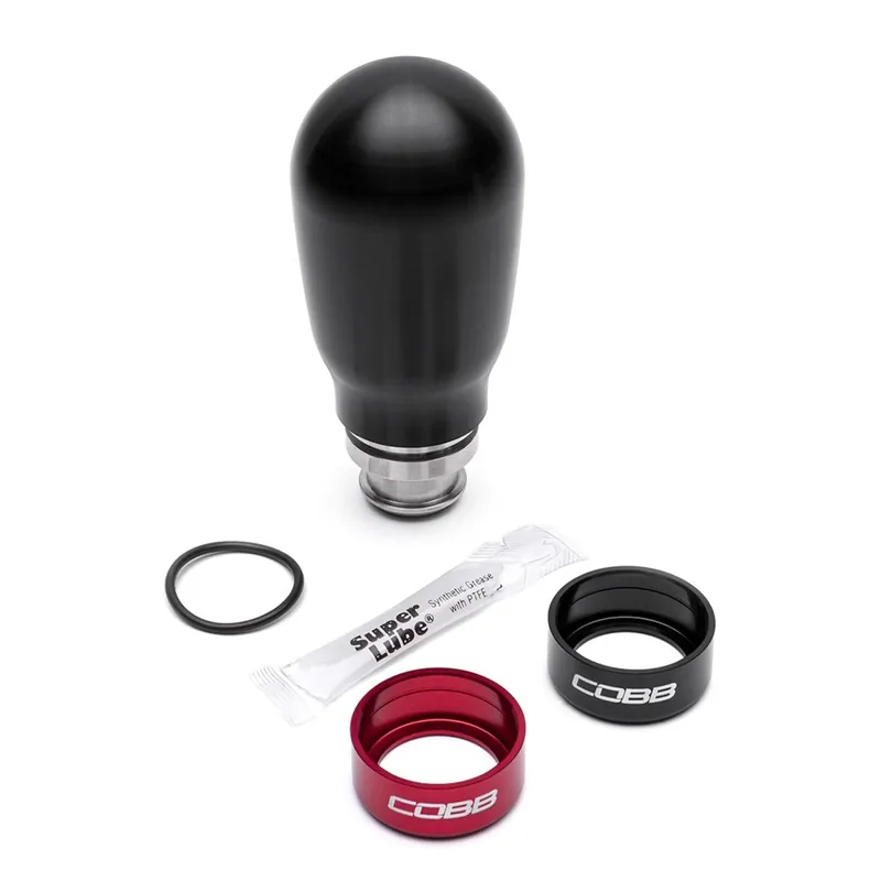 The Tall Weighted COBB Knob is designed to keep those extended shifting sessions exhilarating. The billet stainless steel base/insert provides a weight similar to OEM knobs and is internally threaded to provide a tight fit onto the shifter which won’t come loose in the most frenzied of gear changes. The delrin upper section ensures comfortable gear changes in the most extreme climates. Both Race Red and Black lower collars are included. This knob weighs in at 325g. Spin on a COBB Knob and go for a ride!