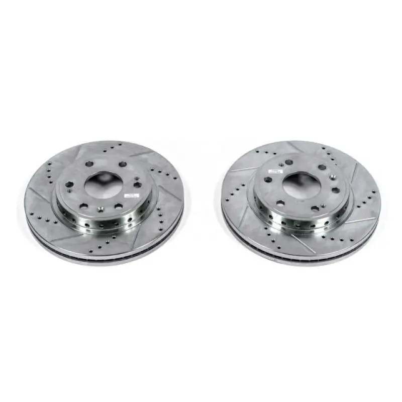 Power Stop drilled and slotted rotors provide a bolt-on upgrade for improved brake cooling and performance. Precision cross-drilled for maximum cooling and maximum performance during extreme conditions; rounded slots sweep away gasses, dust, and moisture to keep a clean friction contact patch on the rotor surface. Silver zinc dichromate plating resists rust and corrosion. With a direct OE fit, there are no special modifications needed.