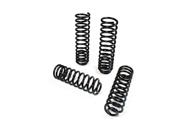 Increase clearance, performance and ride quality with a set of JKS JSPEC™ 3.5″ lift dual rate coil springs. Fits 2007-2018 Jeep Wrangler JK 4 Door. Includes a complete set of matching front and rear coil springs for a level 3.5″ lift. Dual rate springs provide smooth comfortable ride on road, and transition to a firmer rate when tire movement increases off-road for increased vehicle control. Another benefit is the longer overall length, which allows the use of longer shocks for more wheel travel. Whether loaded down with gear for a weeklong expedition, running light for some rock-crawling fun or loaded with a few friends for a trip to the beach, JSPEC™ coils provide the ride you want and the performance you need.