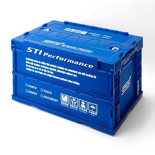 This container is designed to be stackable in order to efficiently organize tools and luggage. This collapsible container is finished off with the STI logo.