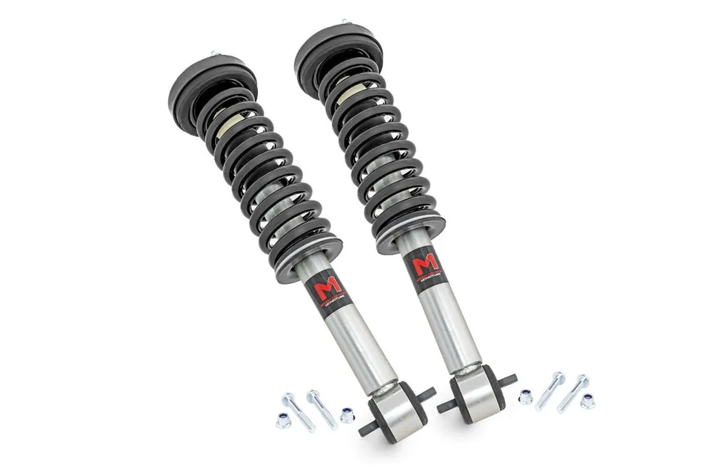 Improved Stance, Balance, and Handling.ΓÇ»If you want to improve your vehicle’s on-road performance and off-road capabilities, Rough Country’s M1 Loaded Strut Kits are the way to go. Our M1 Loaded Struts help stabilize your vehicle’s movements, enhancing control when you turn, brake, accelerate or ride over uneven road surfaces. As an adjustable ride height strut, these M1ΓÇÖs keep your suspension from overextending, providing a more consistent ride. Made for rugged off-road performance, our M1 monotube struts have a 46mm digressive piston for a more stable ride, preserving the smooth ride quality you need.\\Quality Construction.ΓÇ»Rough Country’s M1 Loaded Struts have been engineered to give you the most reliable performance, increased driving comfort, and all-around performance for your vehicle. Made from 2″ seamless extruded tubing and features durable vulcanized natural rubber bushings. They’re also zinc-plated for resistance against the elements. Plus, they’re adjustable in height. Utilizing multiple grooves in the strut body the spring perch can be raised or lowered. So whether you’re looking to add a little extra clearance for off-roading or just want your ride to sit a little higher, our M1 Monotube Loaded Struts are the perfect solution.\\Installation and Warranty. This bolt-on installation requires just basic tools and about 2-3 hours to complete. Our Strut Kit is backed with a limited lifetime replacement warranty towards manufacturer defects. As such, the product is protected from structural and workmanship damage after the date of purchase. With our industry-leading warranty, give yourself peace of mind when using Rough Country’s products!