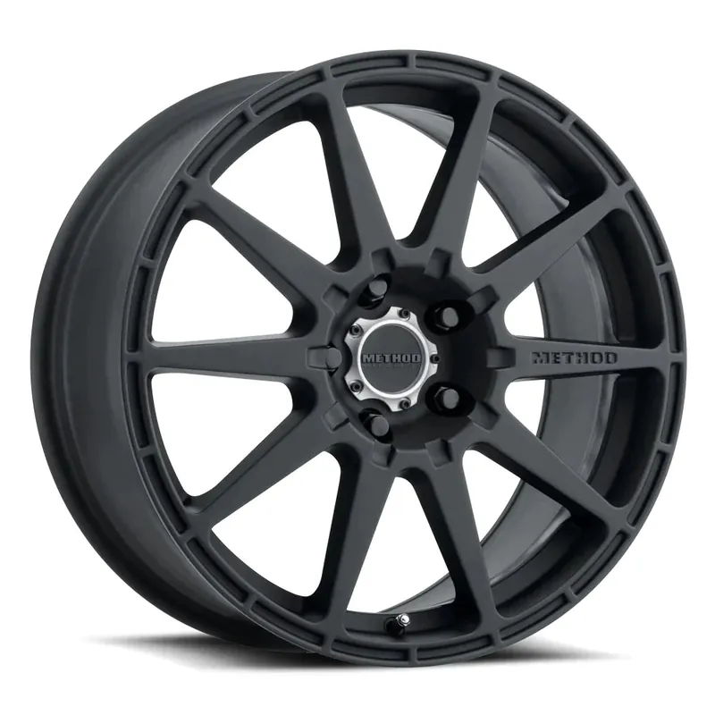 Upgrade your Subaru WRX STI with the Method Race Wheels MR501 Rally in Matte Black, designed to enhance both style and performance. These 17×8 wheels with a +42 offset feature a striking open 10-spoke design and a debossed METHOD logo, giving your ride a bold, aggressive look on any terrain.