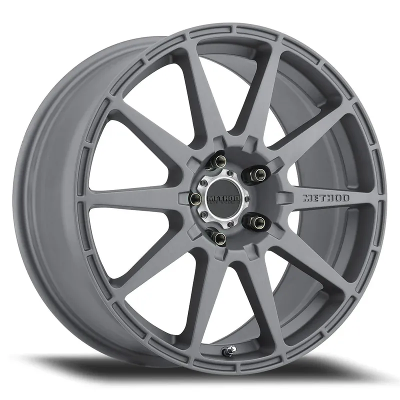 Upgrade your Subaru WRX STI with the Method Race Wheels MR501 Rally Titanium 17×8 +42 5×114.3, designed for enthusiasts who demand strength and style. This premium wheel features an open 10-spoke design with a debossed METHOD logo, combining aggressive aesthetics with proven durability. Engineered to exceed SAE 2530 standards, it supports a strong 1850 lbs load rating, ensuring reliable performance on and off the road.
