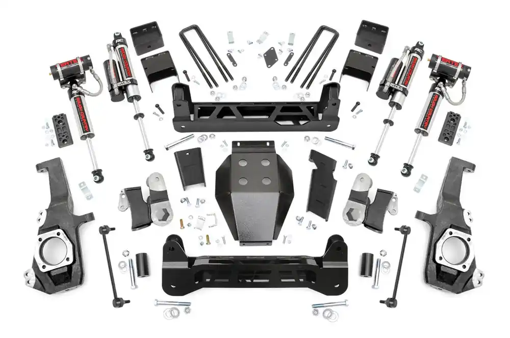 Transform Your HD With Confidence: Upgrade your fourth or fifth-generation Chevy/GMC 2500HD/3500HD with Rough Country’s 5-Inch Non-Torsion Drop Suspension Lift Kit. This high-clearance system adds serious attitude and off-road capability to your truck, delivering the height you need to run 35-inch tires, all while maintaining a clean, integrated factory look underneath thanks to its non-torsion drop design.Engineered for a Sleek, Factory-Fit Appearance: Unlike traditional kits that leave torsion bars hanging low and exposed, Rough Country’s innovative non-torsion drop design keeps everything tucked up and streamlined. You’ll enjoy unmatched ground clearance and a sharp, OEM-style appearance that complements the aggressive stance of your HD truck.Built for Strength and Precision: The kit includes rugged, laser-cut front and rear crossmembers crafted from durable steel for a precise, bolt-on fit. The signature “RC” logo adds a bold touch up front, while the heavy-duty differential skid plate offers extra protection during off-road adventures. Lifted knuckles, rear anti-wrap blocks, and a range of premium shock options, like Rough Country’s nitrogen-charged N3s or the high-performance Vertex reservoir, ensure you get the ride feel and handling you demand.Ride Quality You Can Rely On: This lift system retains factory ride comfort and control, keeps axle geometry true to spec, and preserves OEM track width. No drivetrain modifications or differential drilling required, just a clean install and predictable performance, mile after mile.Backed by Rough Country’s Limited Lifetime Replacement Guarantee: Drive with peace of mind knowing your lift kit is covered for the long haul.