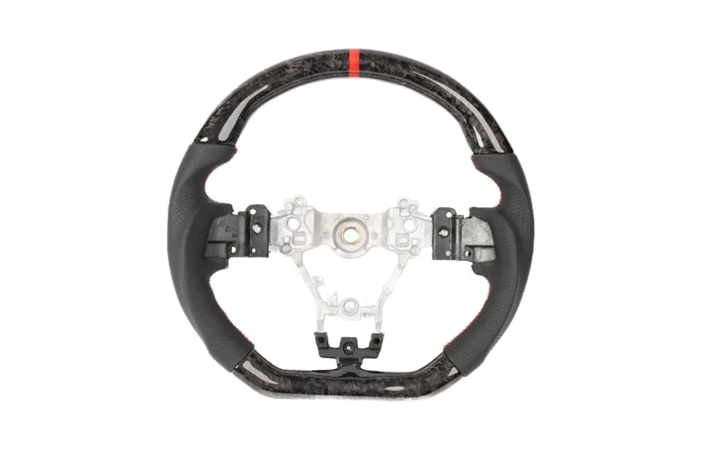 Molded Innovations Forged Carbon Fiber Steering Wheel w/ Perforated Leather Grip, Red Stripe and Red Stitching 2008-2014 WRX / 2008-2014 STI / 2009-2013 Forester / 2008-2011 Impreza / 2008-2009 Legacy / 2008-2009 Outback Price Drop