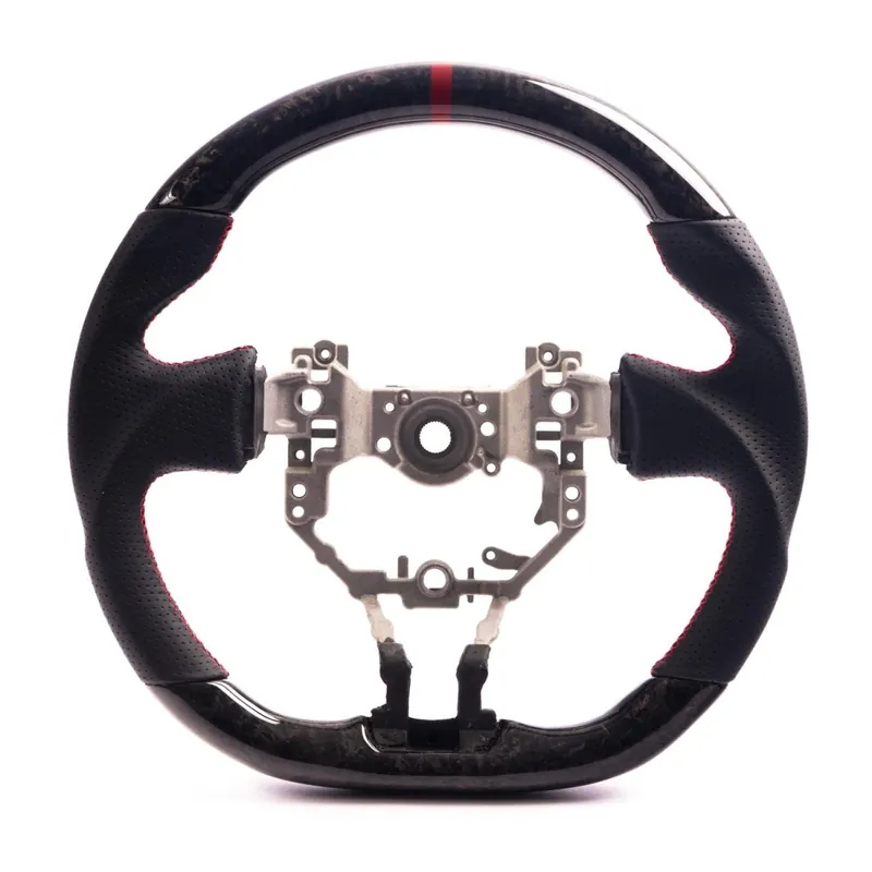 Molded Innovations Forged Carbon Fiber Steering Wheel w/ Perforated Leather Grip, Red Stripe and Red Stitching 2013-2016 BRZ / 2013-2016 FRS High Quality