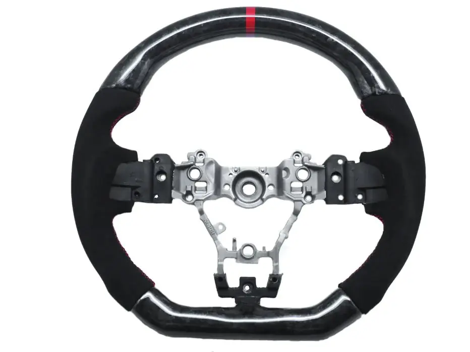 Molded Innovations Forged Carbon Fiber Steering Wheel w/ Suede Grip, Red Stripe and Red Stitching 2008-2014 WRX / 2008-2014 STI / 2009-2013 Forester / 2008-2011 Impreza / 2008-2009 Legacy / 2008-2009 Outback Grab Now
