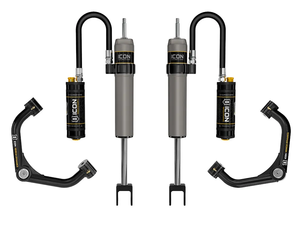 To ensure compatibility, ICON is no longer offering GM 2500HD/3500HD upper control arms as individual components. Upper control arms can only be purchased in unison with ICON shock absorbers as a complete system. The included ICON Vehicle Specific (V.S.) 2.5 Series shocks are designed and built to give your vehicle outstanding performance off-road and a smooth ride on the street. These shocks are configured specifically for each application in both length and damping tune. Like all of ICON’s Shock Absorbers, the V.S. 2.5 Series shocks are 100% rebuildable and 100% revalveable. For piggyback and specific remote reservoir applications, ICON’S unique use of a 6061-billet aluminum manifold a few inches below the top cap of the shock creates an internal Bump Zone that when used creates an additional 20% of damping force. This additional force helps prevent harsh bottom outs and controls the suspension when compressing at high velocity. The ICON CDC Valve is an externally adjustable valve that restricts oil flow into the reservoir which creates 10 levels of compression damping force ranges.