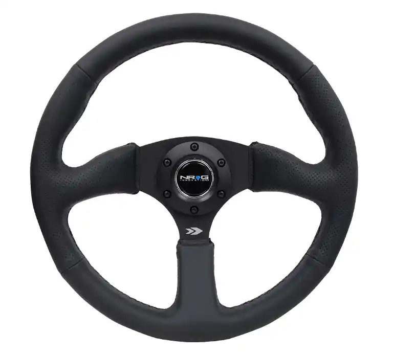 Elevate your driving experience with the NRG Innovations 350MM Deep Dish Steering Wheel, designed for enthusiasts seeking style and performance. This premium leather wheel features a sleek black center with black stitching and a perforated leather grip, delivering both comfort and control for spirited driving or long road trips.