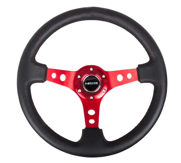 NRG Innovations 350MM Deep Dish Steering Wheel w/ Holes, Red Center, Black Stitching, and Black Leather Grip Super Sale