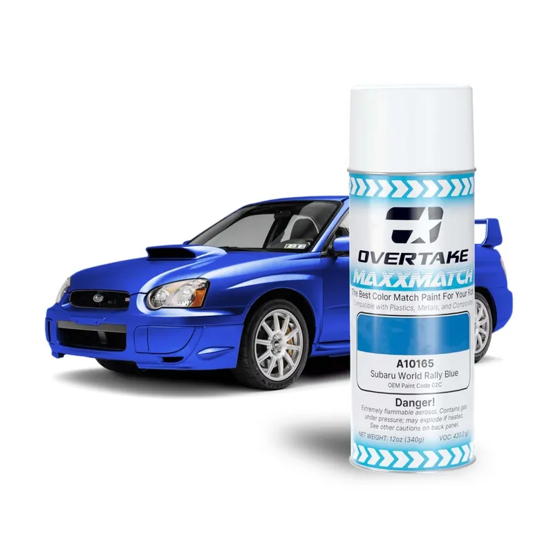 Keep your Subaru looking sharp with the Overtake MaxxMatch World Rally Blue (O2C) touch-up paint in a convenient 12oz spray can. This premium paint is specially formulated to perfectly match Subaru’s iconic World Rally Blue, making it the ideal solution for restoring or enhancing your vehicle’s exterior. Whether you need to fix minor chips or refresh larger areas, this paint delivers a professional finish with ease.