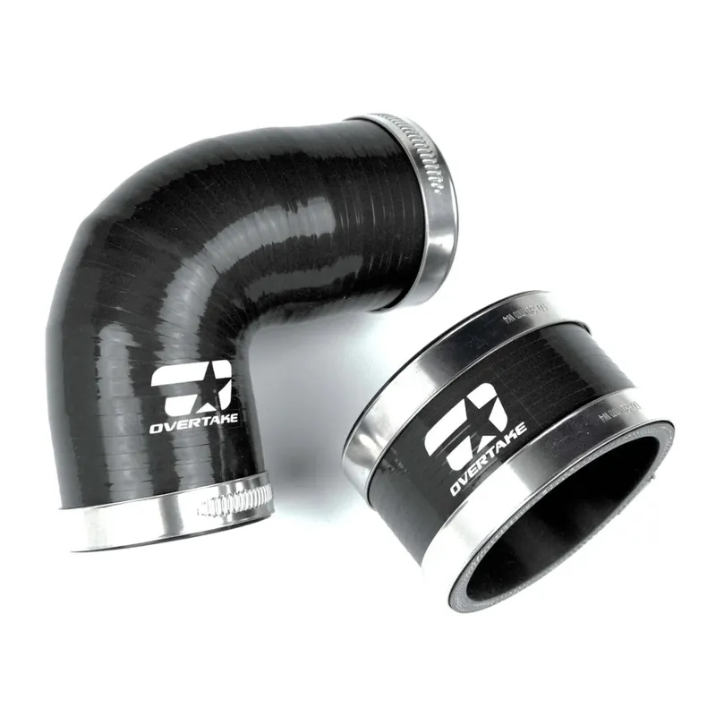 The Overtake TMIC Y-Pipe Hoses are constructed from 5-ply silicone that is fiber-reinforced to prevent distortion, even under high boost pressure. Despite their strength, they maintain flexibility and mobility, effectively isolating your TMIC assembly from engine vibrations.